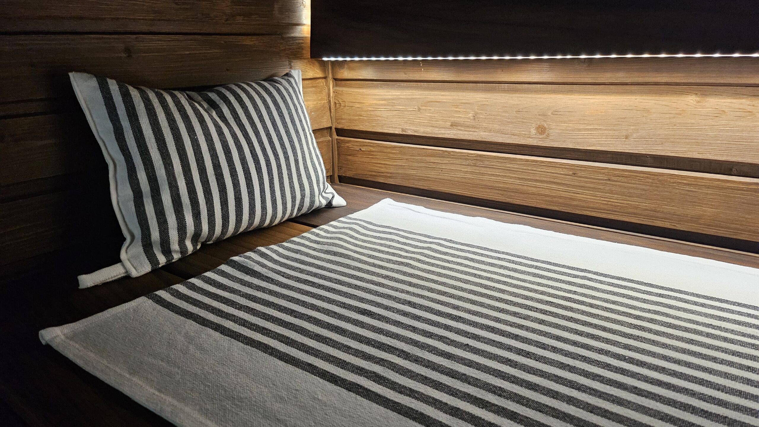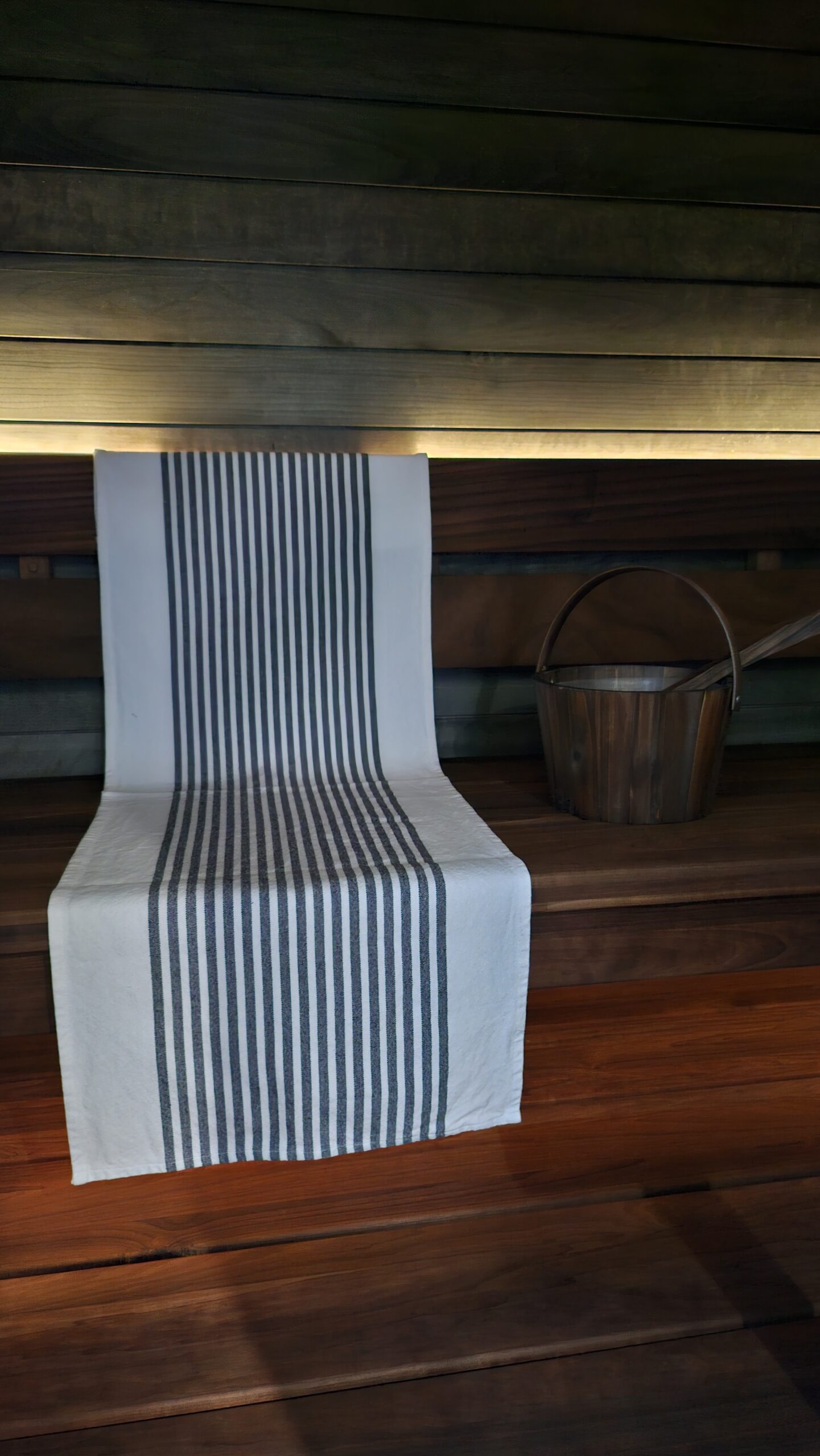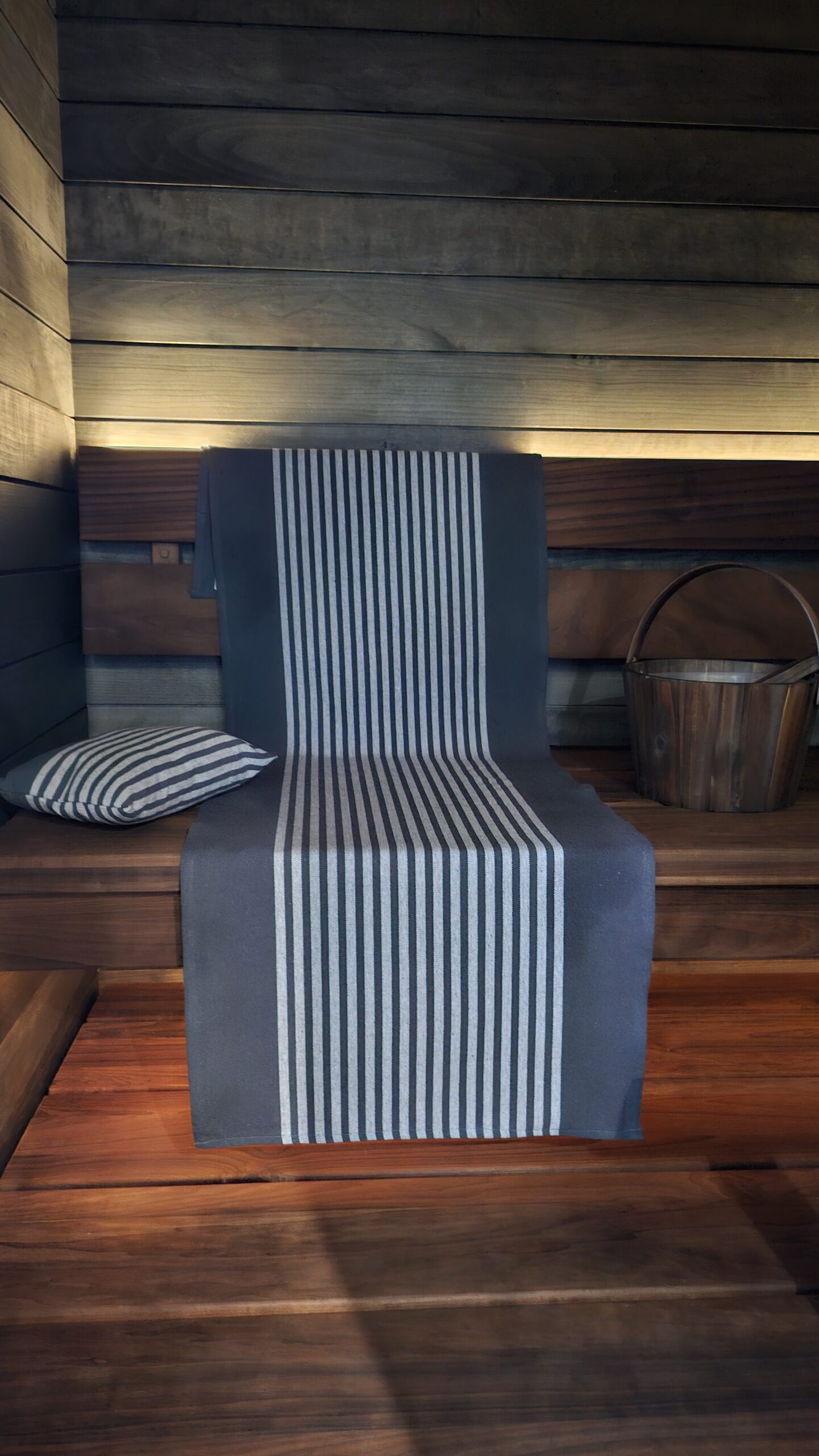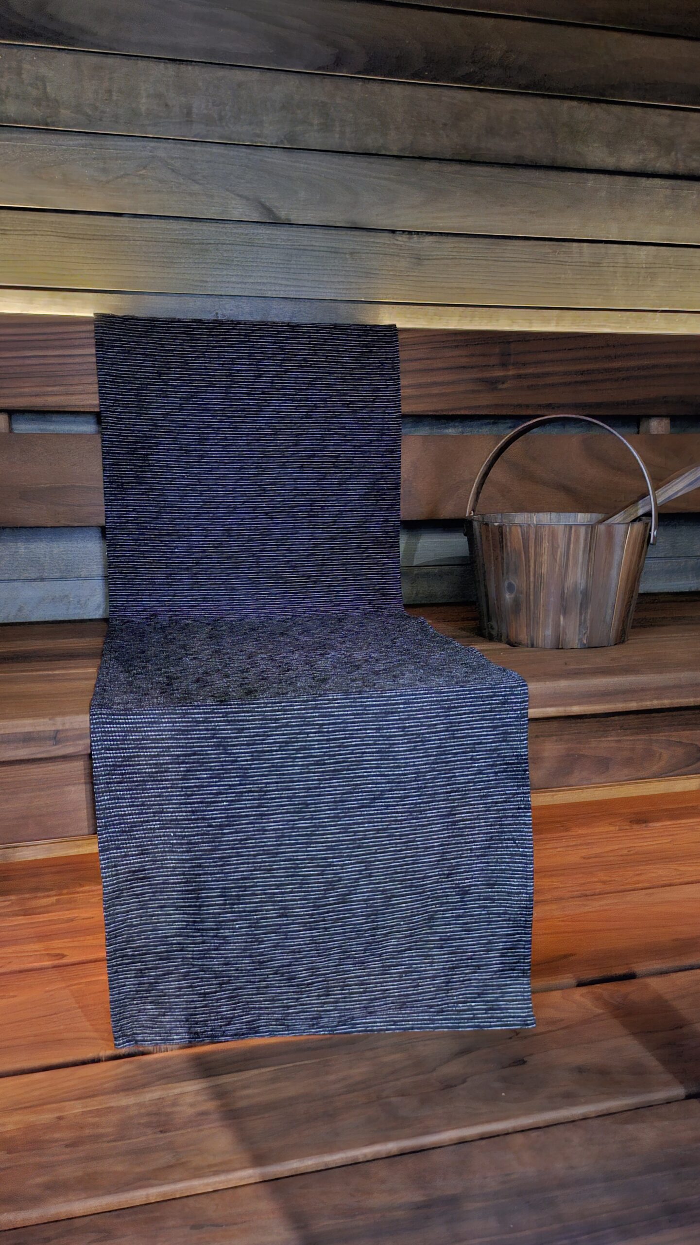 Suosittelen materiaaliksi istuinalusiin ja laudeliinohin myös jämäkkää ja hyväksi todettua ympäristöystävällistä kierrätyspuuvillaa, joka on valmistettu kierrätetystä materiaalista (tekstiilit on jaoteltu, pesty, revitty ja kudottu uudelleen). Kuitu ei sisällä allergisoivia aineita (Ökotex-standardi = ekologinen ja sertifioitu kangas). Kierrätyspuuvillaiset laudeliinat 50 cm x 150cm 25,90€-35,90€, kysy myös muita kokoja, pefletit 12,90€ ja saunatyynyt 14,90€